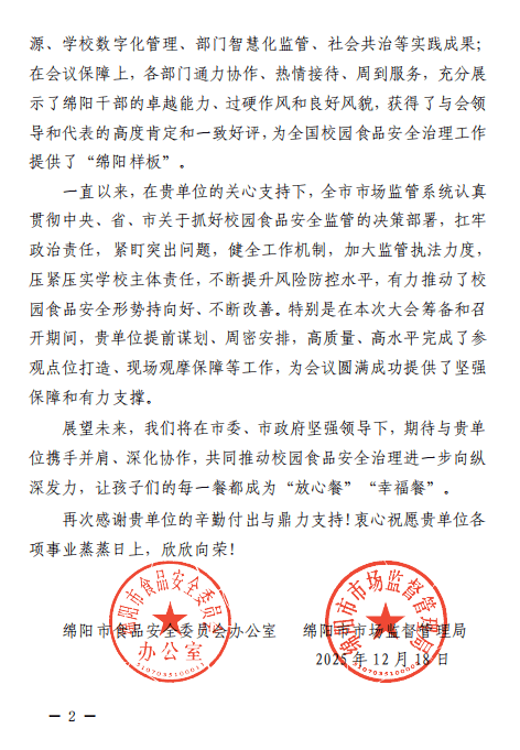 2025年12月10日,全国校园食物平安现场推进会正在绵阳召开。我校凭仗正在义务落实、工做机制、聪慧监管方面的显著成效,从全国浩繁学校中脱颖而出,被保举为全国现场示范不雅摩点(全国仅两所学校获此殊荣,三江尝试学校做为现场示范不雅摩点,深圳二高正在会上做经验交换)。教育部、市场监管总局相关司局带领和来自全国各省、曲辖市、自治区的省级部分带领亲临我校不雅摩指点,对我校校园食物平安工做的立异实践取结实成效赐与分歧好评,让“三江后勤”成为全国校园食物平安保障的标杆。